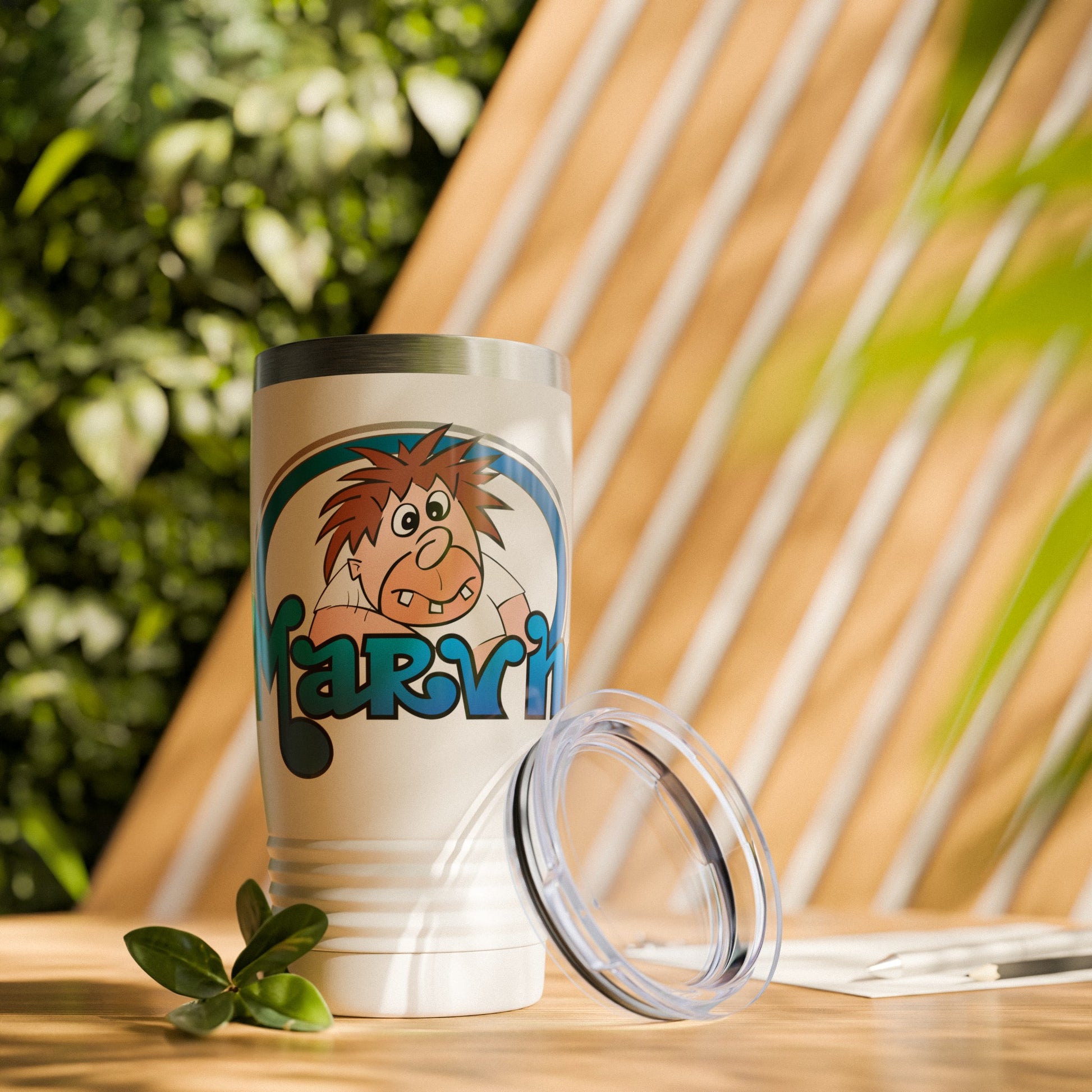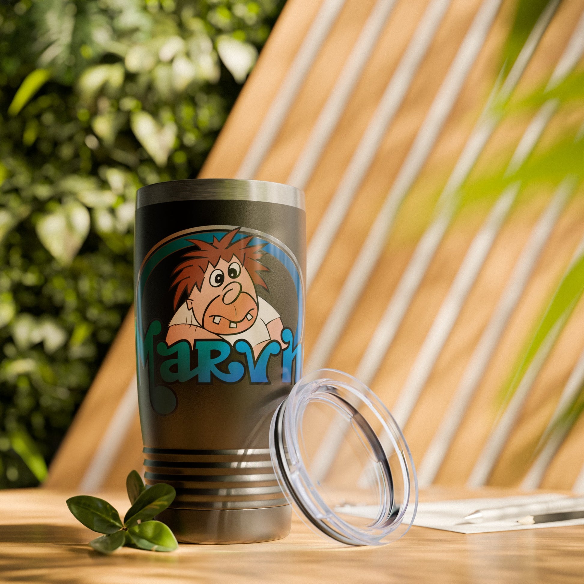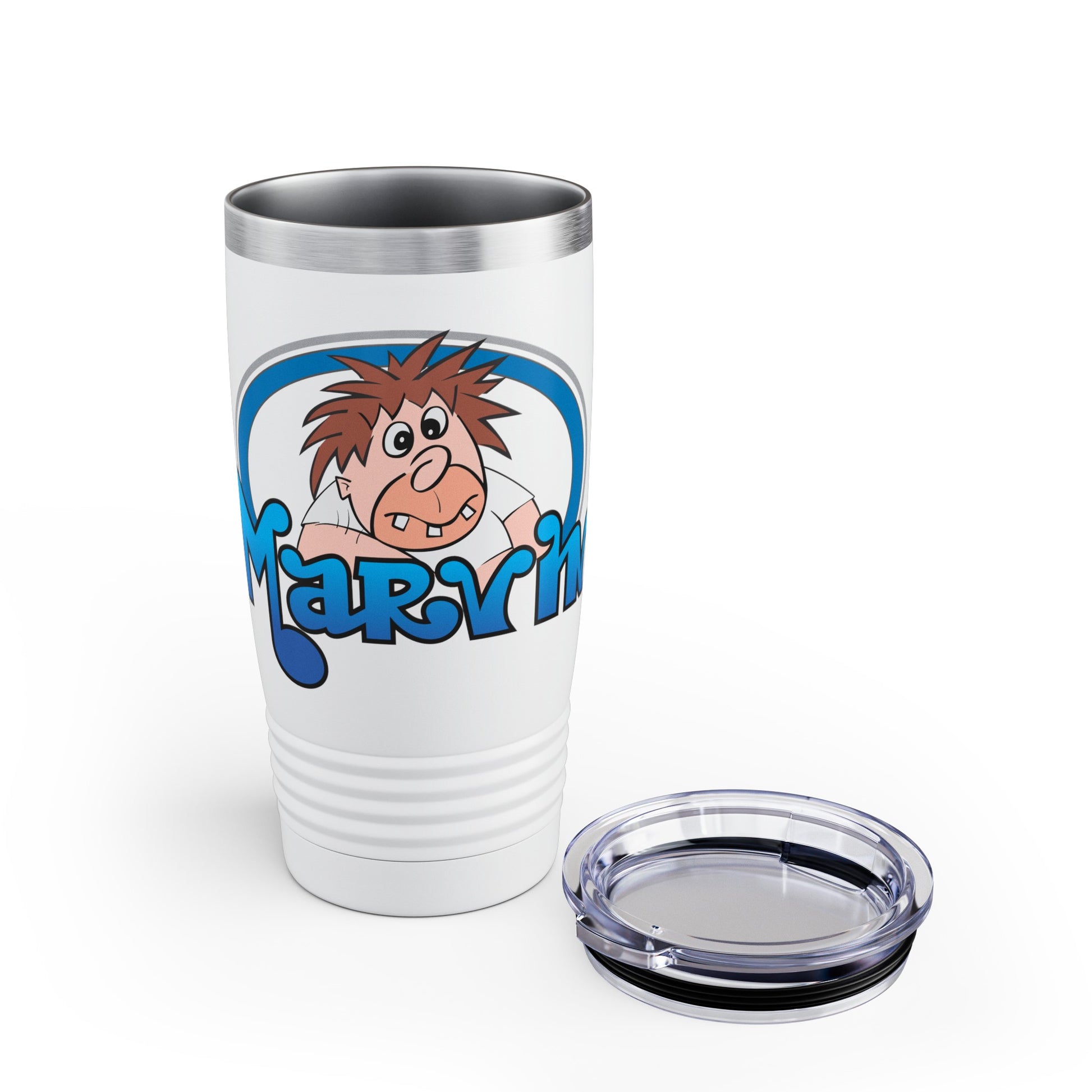 Drink with Marvin! These custom 20oz tumblers feature a double-wall, stainless steel construction for high-end insulation and durability. The clear, push-on plastic lid makes sipping a breeze on the go while the ribbed bottom provides an optimized, steady grip. Choose between 3 gorgeous colors to best compliment your design. All tumblers come with a glossy varnished print.